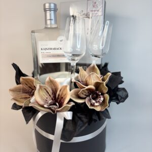 Ez az ajándékdoboz a whisky kedvelőinek lett összeállítva: prémium minőségű italokkal és hozzá illő étcsokoládéval. A természetes díszítéssel rusztikus, mégis igényes megjelenést nyújt, amely bármilyen alkalomra stílusos választás lehet.