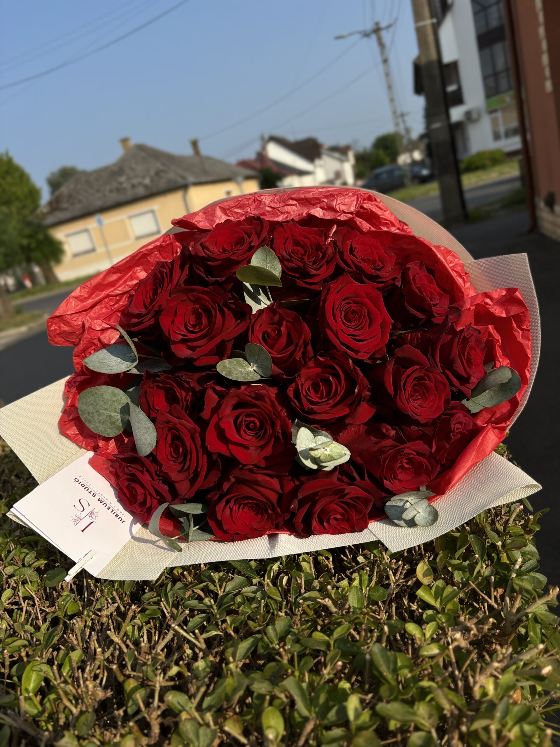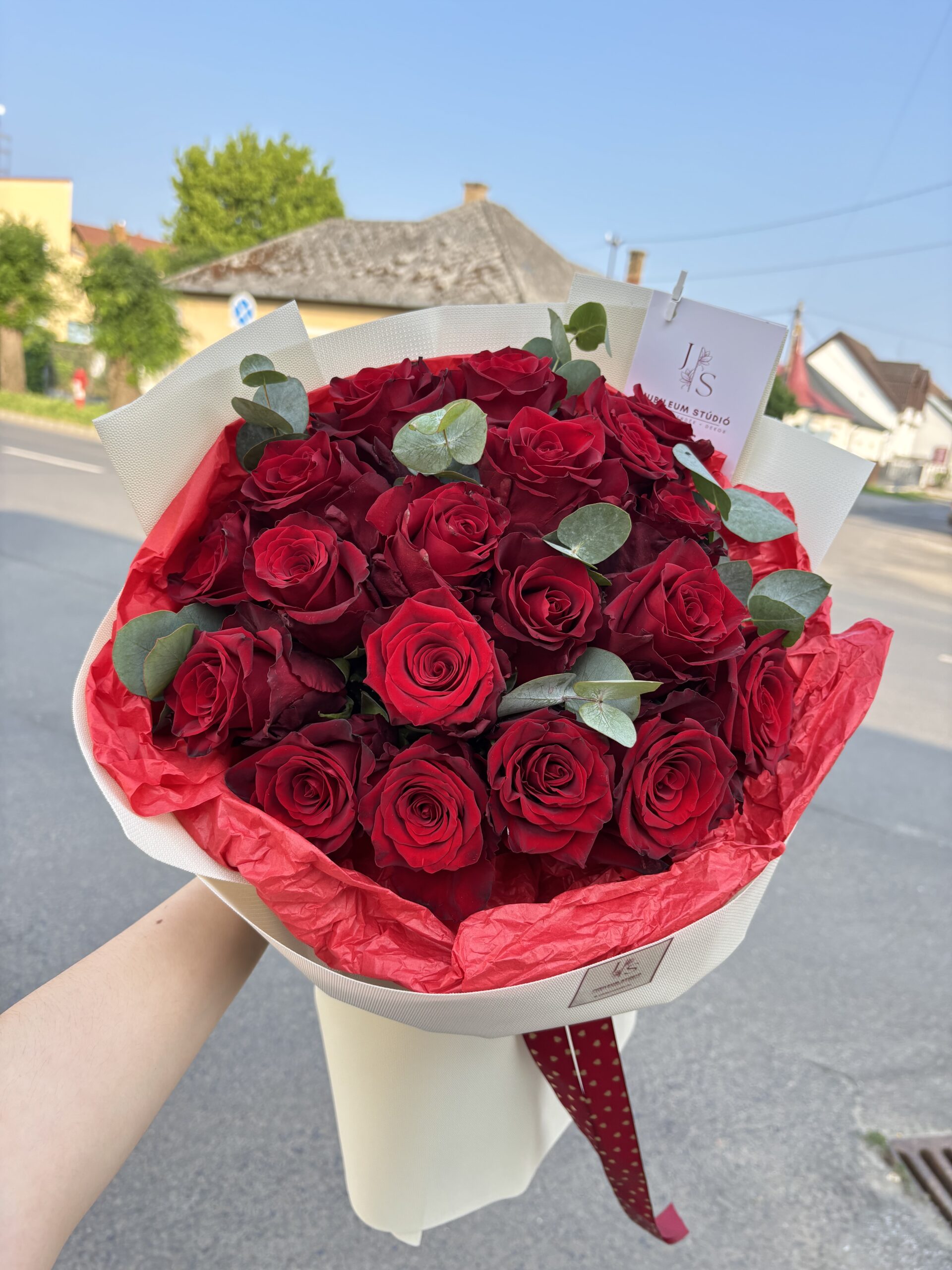 Egy örök klasszikus! Ez a vörös rózsákból készült, elegáns csokor tökéletes választás szerelmeseknek, ünnepi alkalmakra vagy amikor egyszerűen csak szeretnél lenyűgözni valakit.